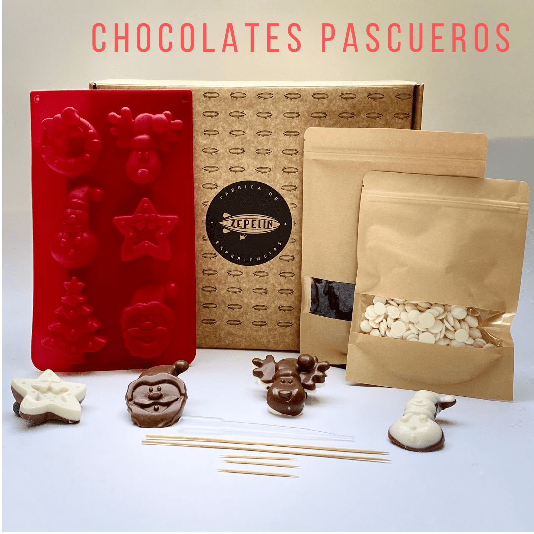 El kit vienen con moldes navideños, también con chocolate para derretir blanco y negro y todo lo que necesitas para que tus preparaciones no solo queden ricas, sino que también muy lindas. Vienen moldes de viejitos pascueros, de renos, árboles de pascua y estrellas.