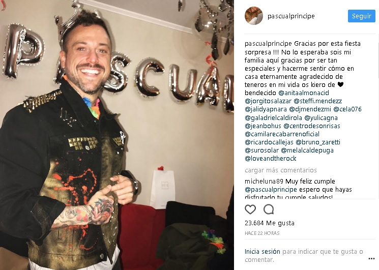 “¡Gracias por esta fiesta sorpresa! No lo esperaba, sois mi familia aquí, gracias por ser tan especiales y hacerme sentir como en casa. Eternamente agradecido de teneros en mi vida, os quiero de corazón, bendecido”, escribió el ex participante de “¿Volverías con tu ex?” y “Doble tentación” a través de su cuenta en Instagram (@pascualprincipe).