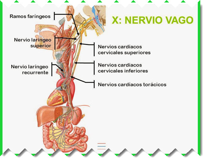 ¡Pero este nervio es mucho más que esto! Este transmisor craneal es el más largo del cuerpo, comenzando a la altura de las orejas, siguiendo por el cuello, tórax, abdomen y riñones.