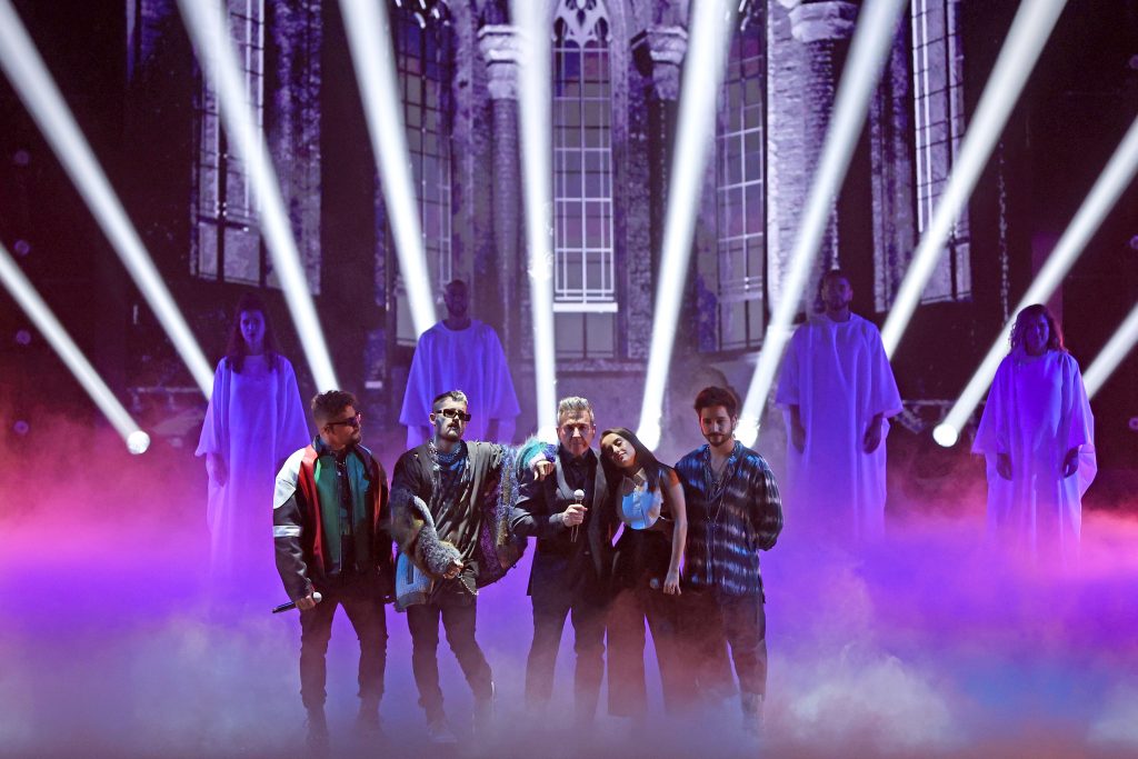 Sobre un simple escenario por el que ya había pasado Maluma, Prince Royce, Natti Natasha, Gloria Trevi y CNCO se presentaron los cinco Montaner. Iluminados por diferentes tonos violetas y azules, una suave capa de humo los cubrió durante toda la presentación. En el fondo, habían bailarinas vestidas con un largo traje blanco, y las pantallas simularon el fondo de una iglesia.