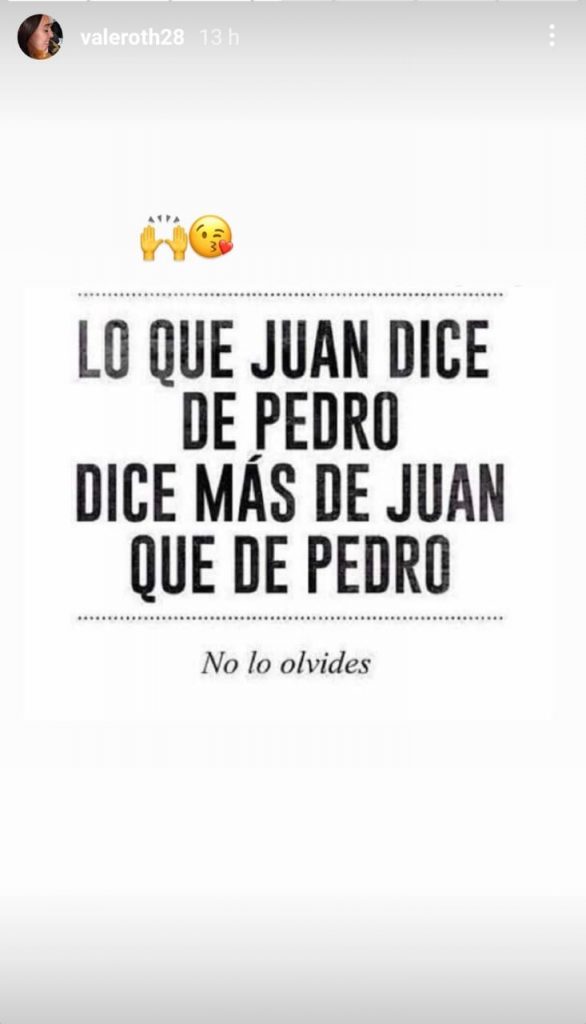 A raíz de esta situación, Vale Roth, le respondió horas más tarde, también por historias.
