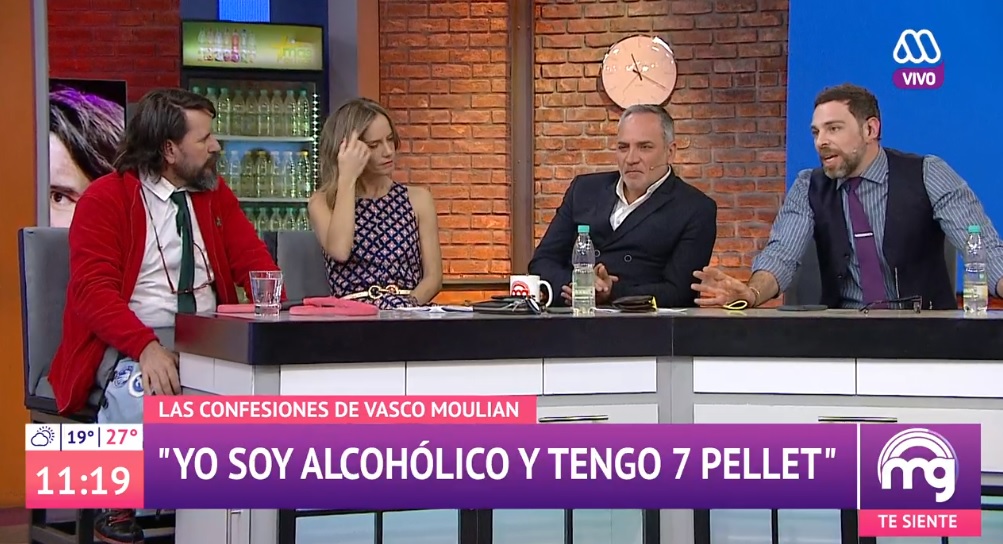 Consultado en el estudio por cuándo se dio cuenta de que era alcohólico, Vasco Moulián dijo: “Estaba viendo un partido de la Católica con mi hija y me había tomado una botella de vodka. Eran las 4 de la tarde. Me caí celebrando un gol”. Luego de eso, contó que con su hija Rosario tomaron la decisión de tener una tratamiento de pellets.