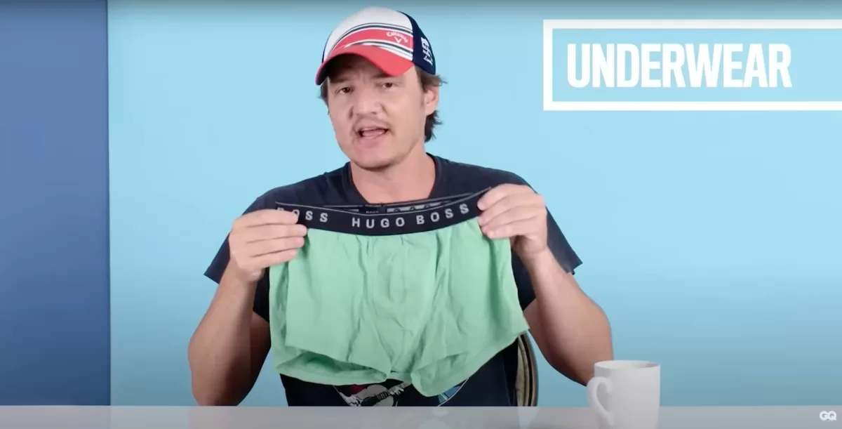 "Y luego uno final, ese es un adicional de esenciales, de hecho, los estoy usando en este momento, mis Toms. Son muy fáciles de poner, son cómodos. Esencial final, un par de ropa interior limpia. No tiene que ser verde, no tiene que ser Hugo Boss (...) Un par de ropa interior limpia, un poco de la mano con los artículos de tocador", cerró Pedro Pascal mostrando su ropa interior.