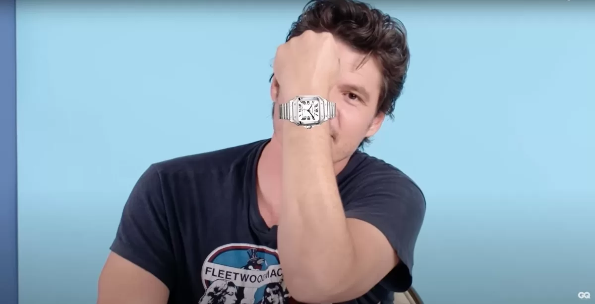 "Otro esencial para mí que debo tener es mi reloj Cartier Santos", comentó Pedro Pascal en la entrevista.