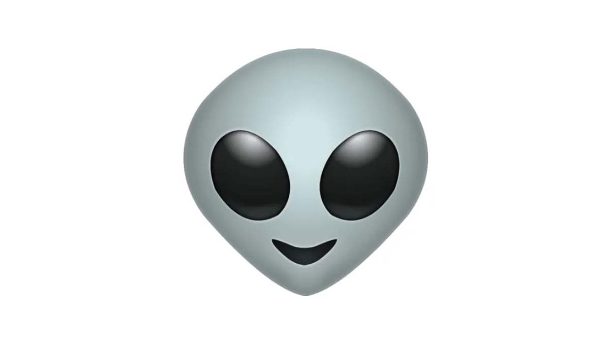 Según la conocida plataforma Emojipedia, este emoji es uno de los más antiguos de la app. Con una cabeza calva de forma extraña y grandes ojos negros, este es un alienígena. En la mayoría de las plataformas este emoji se muestra como extraterrestre verde o gris, y en la plataforma Au KDDI se muestra como un platillo volante púrpura. Generalmente significa un extraterrestre, pero también puede tener otros significados y connotaciones, como algo extraño, único, especial o genial.
