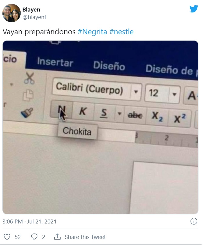 Durante esta jornada, Nestlé sorprendió a todos sus consumidores con el siguiente anuncio: el cambio de nombre de la tradicional gallera de «Negrita» en «Chokita».