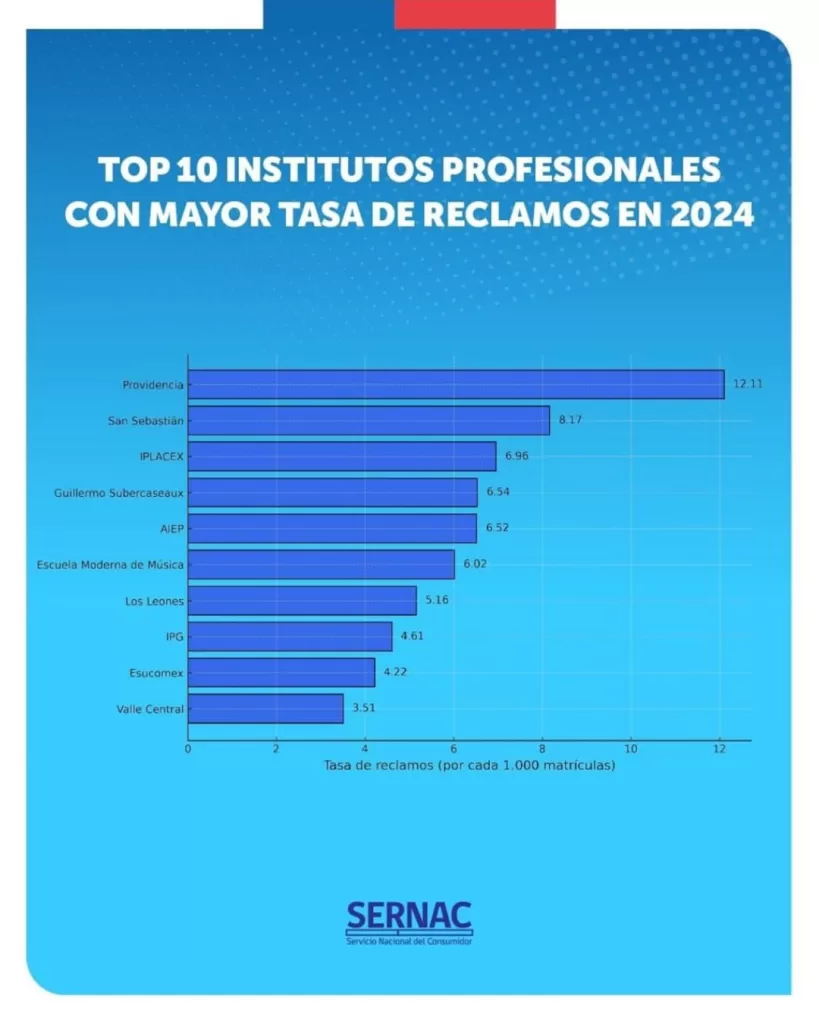 Baja la premisa anterior, el Servicio Nacional del Consumidor (SERNAC) publicó recientemente el informe “Ranking de Reclamos en Educación Superior”, revelando cuáles son los institutos profesionales con mayor tasa de reclamos desde 2022 a 2024, dejando en evidencia preocupaciones respecto a la calidad del servicio y la satisfacción de los estudiantes.