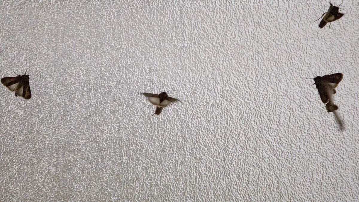 Las que han aumentado en esta época son las polillas Noctuidae, las que miden 2 o más centímetros y con las alas extendidas 4 cm aproximadamente. Este tipo de mariposas nocturnas no hacen ningún daño; son inofensivas.