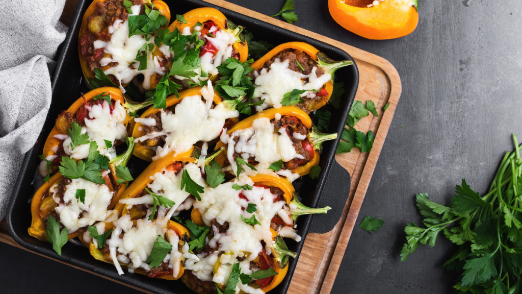 En esta oportunidad te enseñaremos como preparar pimentones rellenos. Solo necesitas tener los siguientes ingredientes: Pimentones, cebolla, carne molida o de soya, arroz o quinoa, ajo, pimienta y sal.
