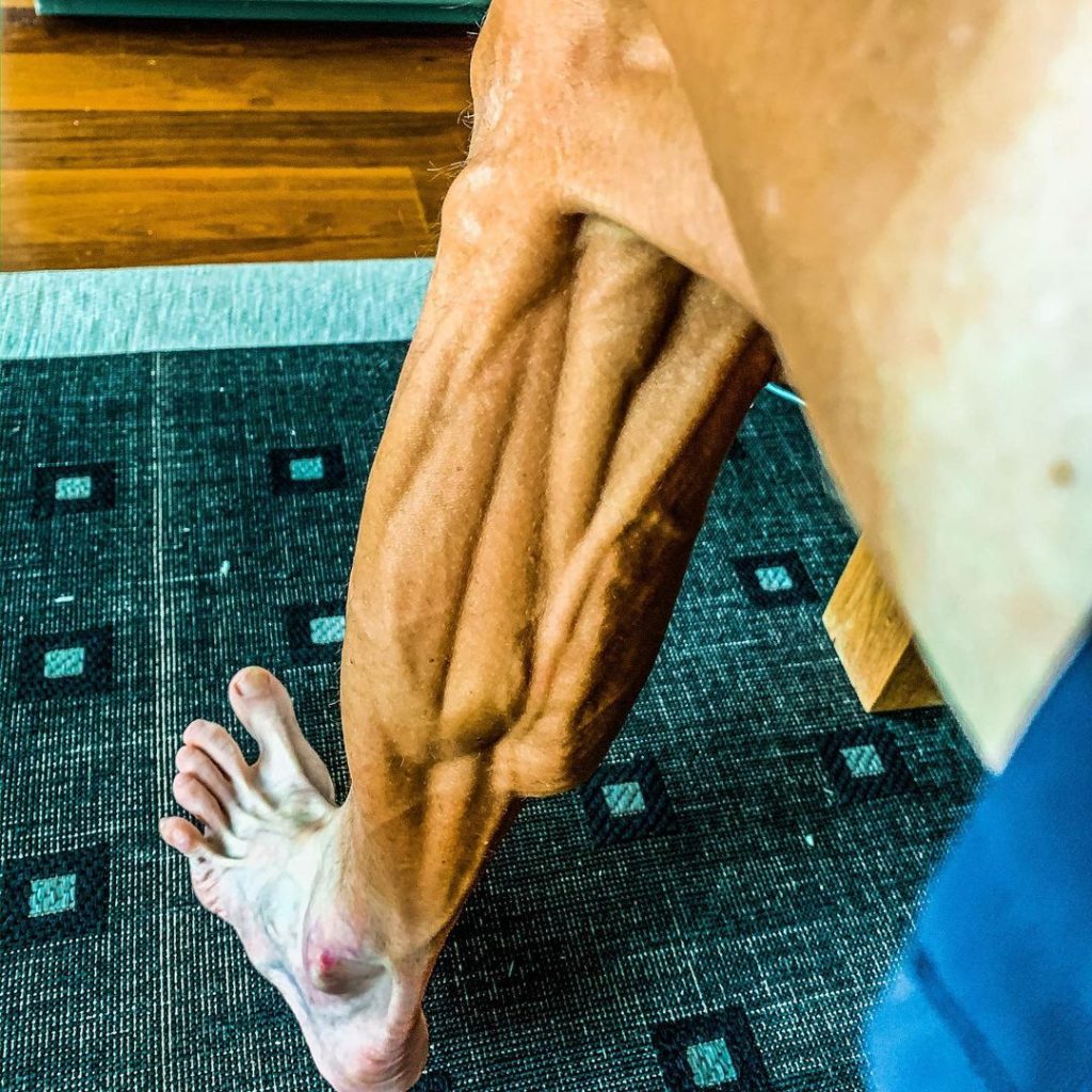Esta foto del año 2016, refleja un sistema de comprensión para el dolor muscular y físico que supone esta disciplina de alto rendimiento.