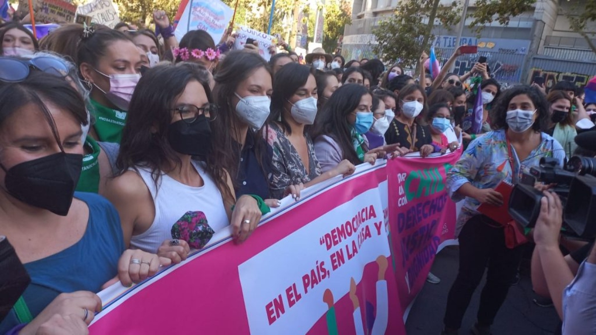 En medio de las personas que se encuentran en la marcha, fueron las futuras ministras del gabinete del Presidente electo Gabriel Boric. Entre ellas figuran Camila Vallejos (vocera de gobierno), Izkia Siches (Ministerio del Interior) y Antonia Orellana (Ministerio de la Mujer y Equidad de Género).