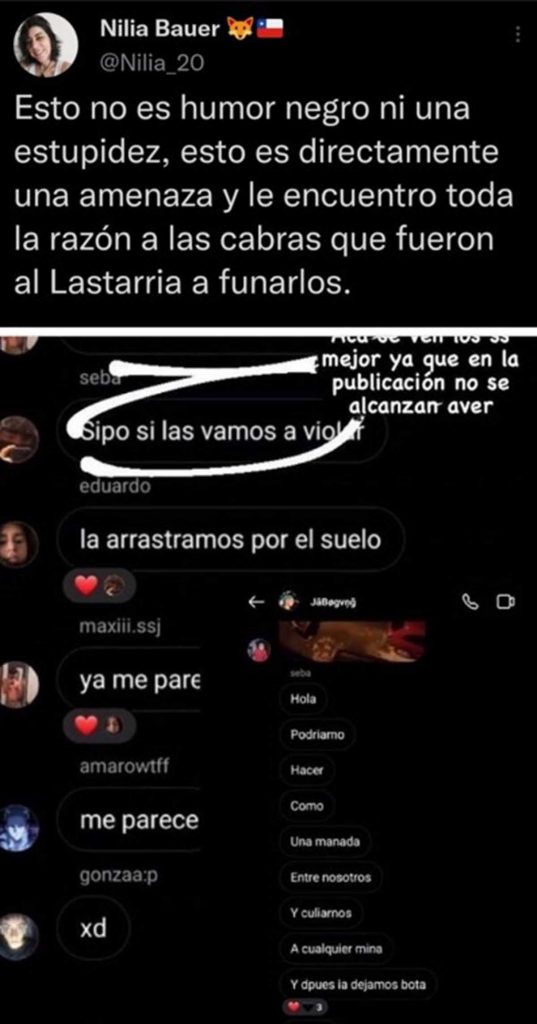 Un grupo de alumnas del Liceo 1, Liceo 7 y Liceo Tajamar acudió al Liceo José Victorino Lastarria para para denunciar a estudiantes de ese centro educativo por una grave acción.