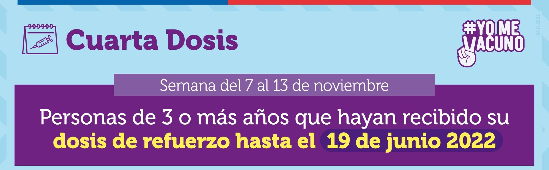 Se suministrará la Cuarta Dosis a personas de 3 o más años que hayan recibido su Dosis de Refuerzo hasta el 19 de junio del 2022.