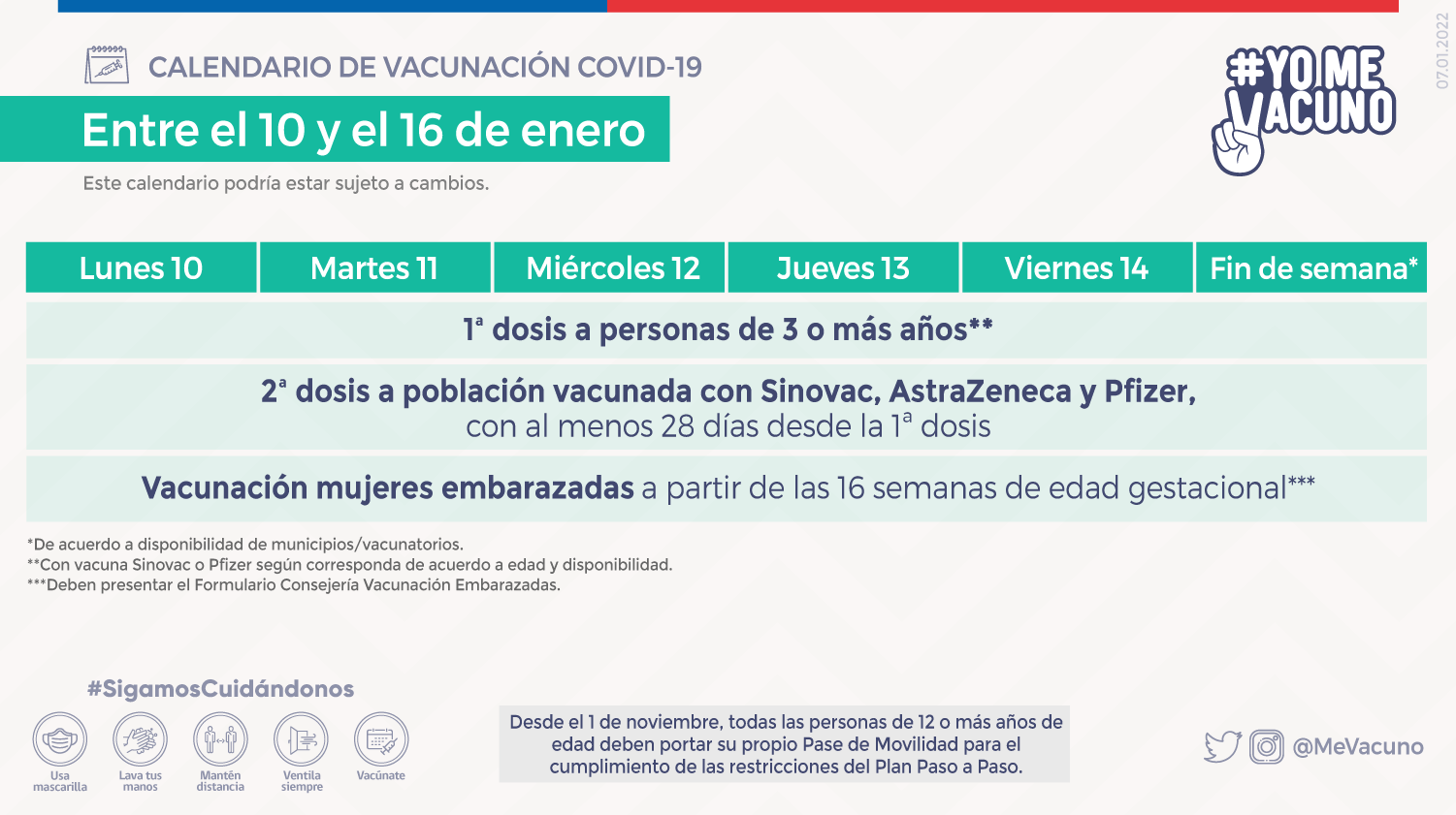 Tal y como podemos ver en la imagen, para esta segunda semana de enero, les corresponde recibir la primera dosis a todas las personas desde los 3 años en adelante.