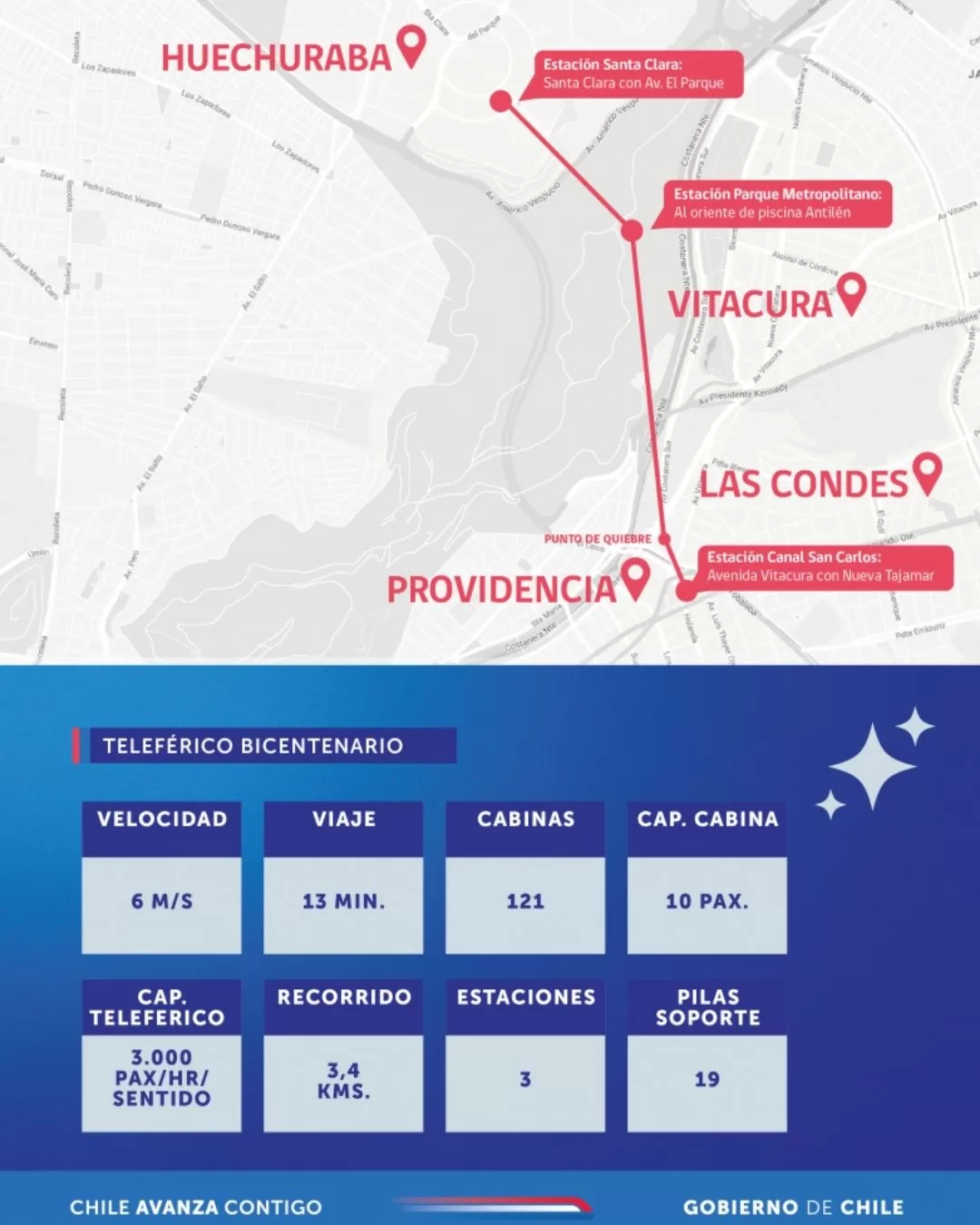 Por su parte, el alcalde de Providencia, Jaime Bellolio, destacó que por su comuna pasan todas las semanas 11 millones de personas: “Eso nos plantea un gran desafío en múltiples ámbitos, uno de ellos tiene que ver con el transporte público. Por primera vez, vamos a tener un teleférico como parte del sistema, que va a permitir mejor movilidad, integración y, sobre todo, menos autos y menos viajes en vehículos. Es una alegría que este proyecto finalmente vea la luz y entregue una imagen de modernidad en un sector que hoy día pasa a ser emblemático para nuestra ciudad”.
