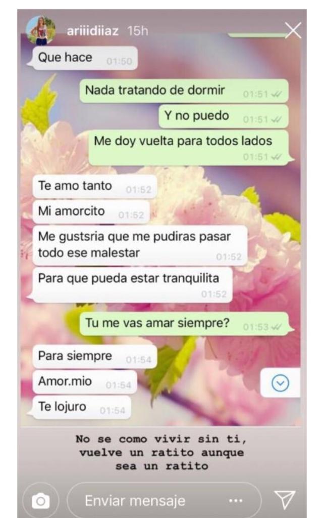 "¿Tú me vas a amar siempre?, le preguntó Araceli en la conversación, ante lo que "Cangri" respondió: "Para siempre, amor mío, te lo juro".