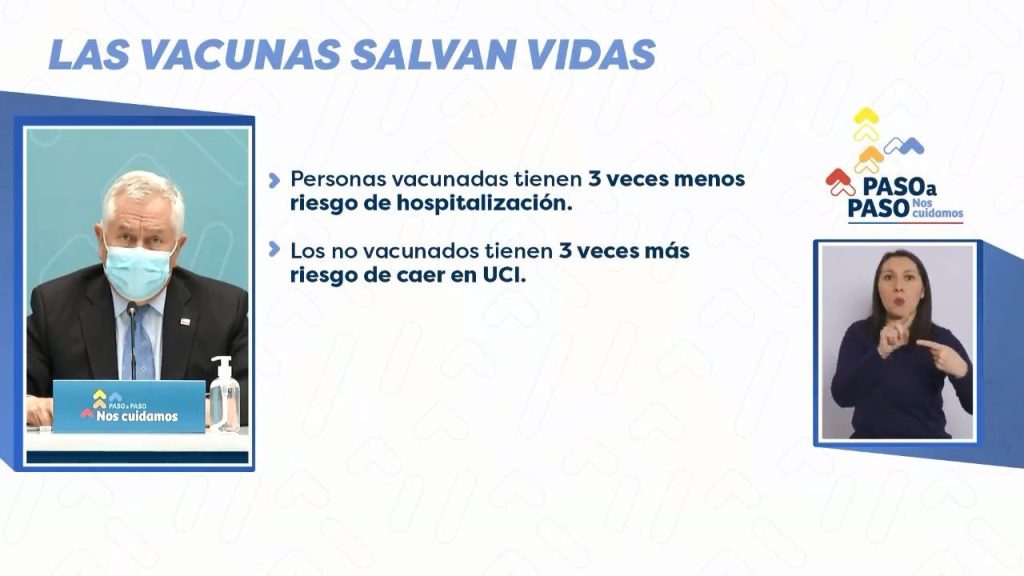 Respecto a las vacunas, el ministro de Salud, Enrique Paris indicó que el "estudio chileno de coronavac comprueba la efectividad de la vacuna", agregando que un en un 65,9% esta previene los síntomas de covid-19.