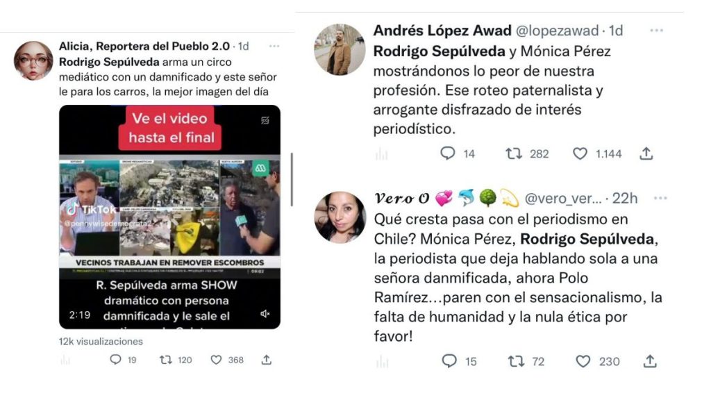 Esta situación se suma a otras críticas que se le han hecho a periodistas durante la cobertura de la catástrofe en la ciudad jardín. Anteriormente Mónica Pérez y Polo Ramírez fueron cuestionados por sus polémicas preguntas a las víctimas, que usuarios en redes sociales han calificado como “indolentes” y “desubicadas”.