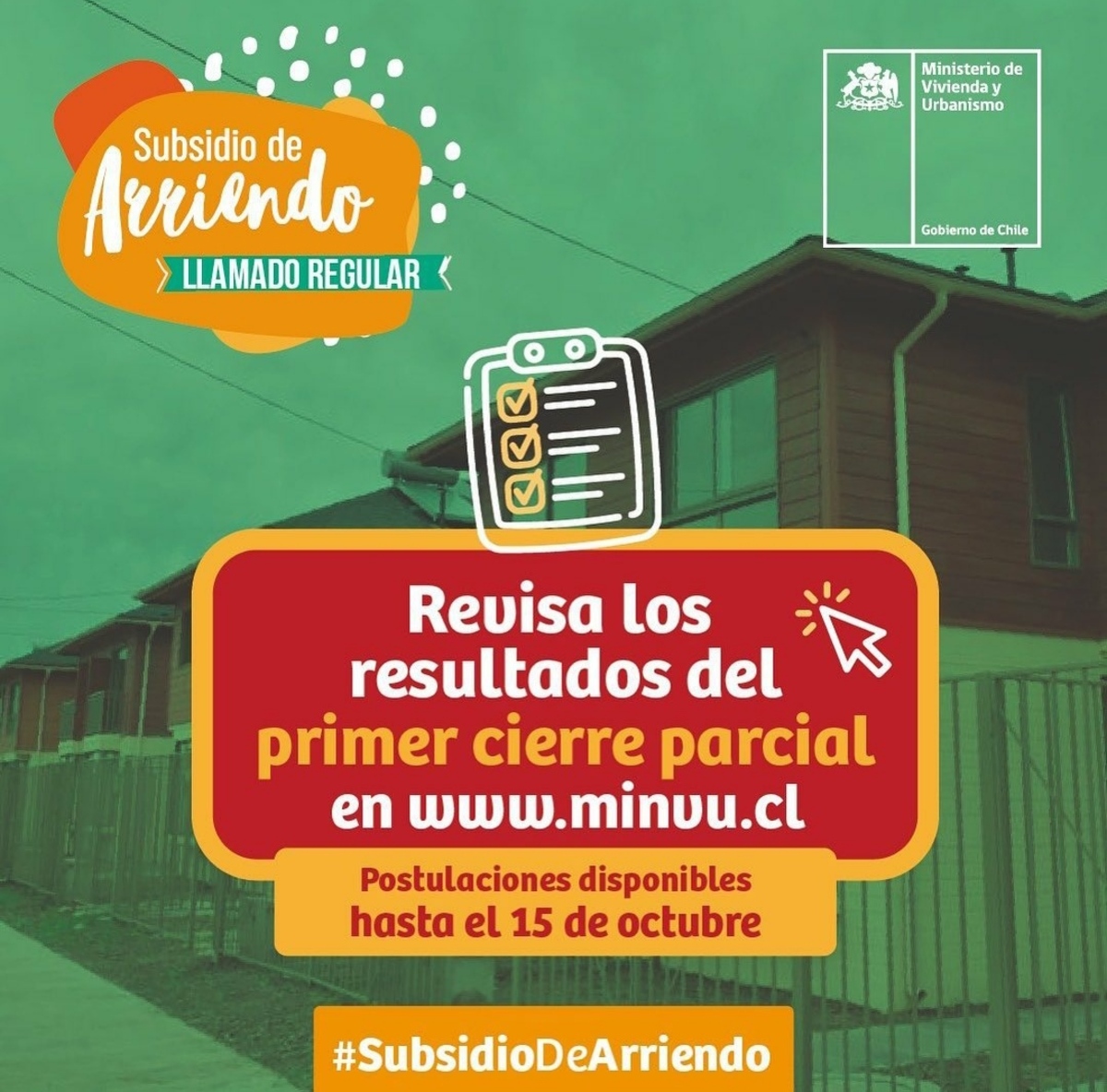A través de sus plataformas digitales, el Ministerio de Vivienda y Urbanismo anunció que ya están disponibles los resultados del primer cierre parcial del Subsidio De Arriendo Regular.