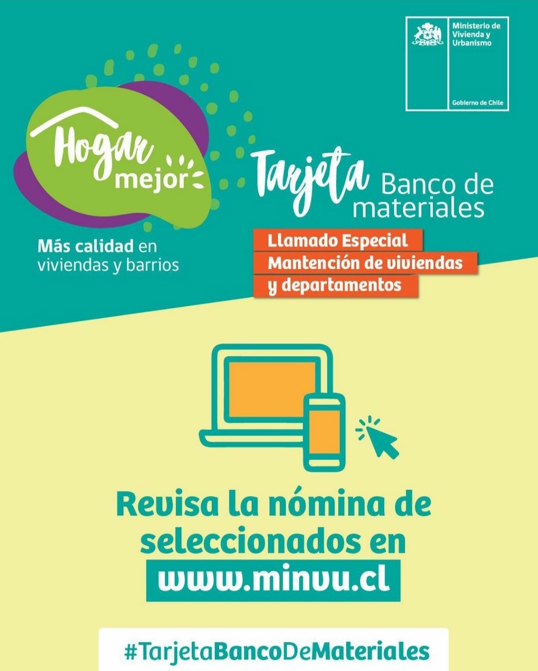El Ministerio de Vivienda y Urbanismo (Minvu) anunció que ya están disponibles los resultados del último cierre del Llamado Especial 2021 de la Tarjeta Banco de Materiales.