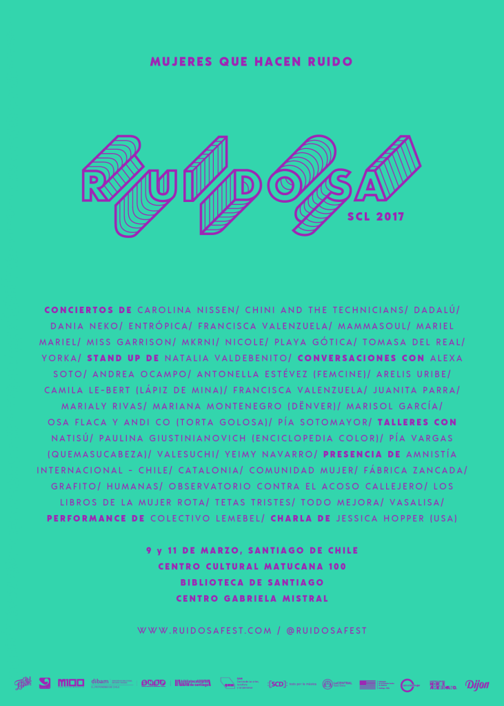 El sábado 11 Ruidosa Fest se realizarán paneles de conversación y stands de instituciones como el Observatorio Contra el Acoso Callejero y Tetas Tristes, además de las presentaciones de importantes artistas, como Francisca Valenzuela y Nicole y el stand up de Natalia Valdebenito.