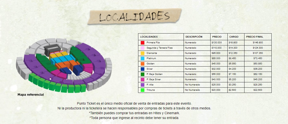La cantante se presentará el sábado 18 de agosto, en el Movistar Arena y las entradas ya se encuentra a la venta a través del sistema Puntoticket.cl. Los precios parten en los 22.600 pesos en tribuna y llegan a los 146.900 pesos en primeras filas.