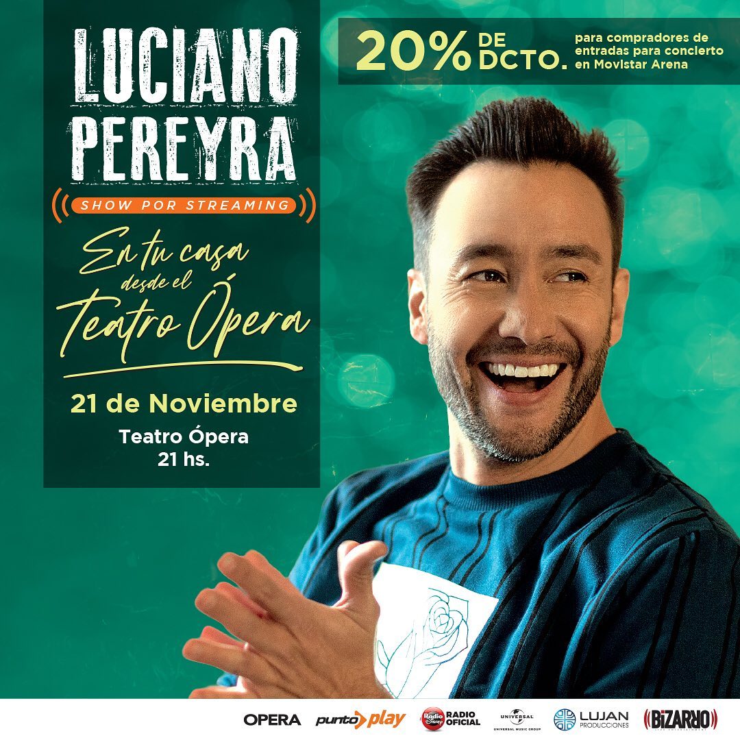 "En tu casa desde el Teatro Opera" es el nombre del concierto que dará Luciano Pereyra, el cual se transmitirá por streaming el 21 de noviembre a las 21:00 horas de Chile.
