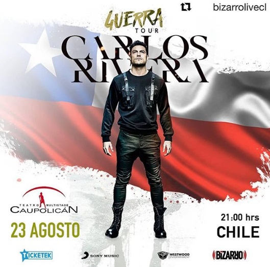 En el marco de su "Guerra Tour", el cantante mexicano se presentará el próximo viernes 23 de agosto, a las 21:00 horas, en el Teatro Caupolicán.