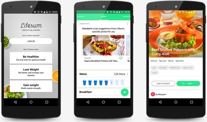 2.- Lifesum: Al abrir esta aplicación, te das cuenta inmediatamente que será tu compañera a diario. Lo primero es que te ayuda a mejorar tu salud. Desde esa opción, y luego de agregar un par de datos básicos, puedes armar el menú de comida dependiendo de las calorías, información nutricional, cuánto te aporta a tu organismo, etc. Es muy completo el listado de productos y te sirve para ordenar tu semana de comidas. Aparte tiene un listado de recetas de comidas diseñadas especialmente para ti que te sorprenderán. A mi parecer, esta es una de las aplicaciones más completas que existen y tiene dos versiones, una gratuita y una pagada. Los valores de la pagada son bajos para el aporte que te entrega en el día a día.