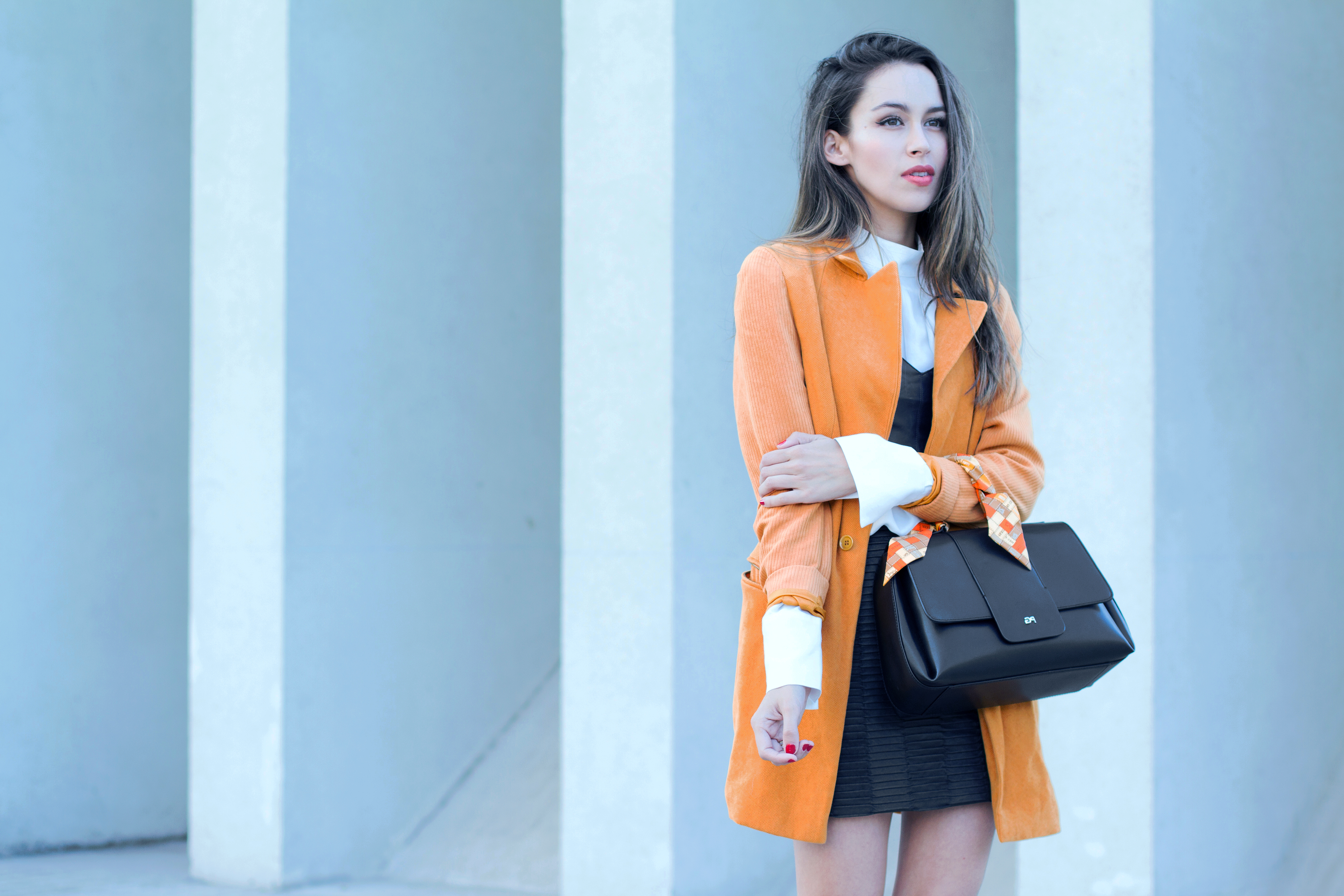 5) Un tip increíble para estilizarnos con los abrigos. Úsalos largos y abiertos en tonos oscuros. Eso hará que solo se vea una franja central del cuerpo y ¡te estilizará!