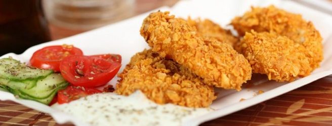 VERDURAS Y POLLO CRISPY CON HARINA DE TRIGO Y AVENA