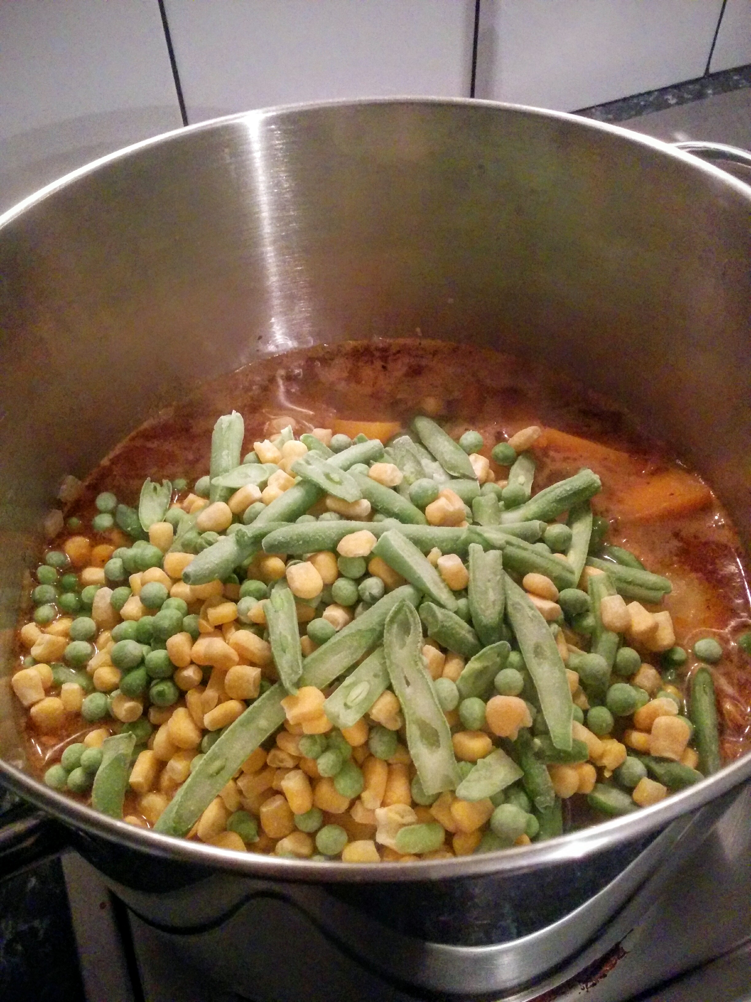 *Dato: Otra opción es tener las papas y zapallo precocidas, así es mas rápido. Y es solo cosa de ir mezclando los ingredientes. Si lo haces así, puedes agregar el caldo o agua caliente.