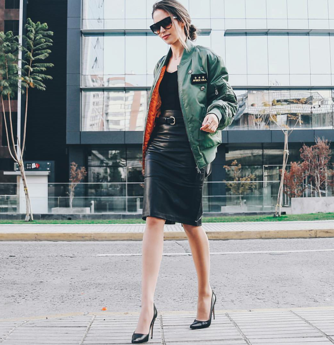 - Recuerda que vivimos en tiempos de grandes contrastes. No pienses solo usarla con jeans. Atrévete a mezclar tu bomber con un look formal, como una falda lápiz, por ejemplo. Esa podría ser una excelente idea. ¿Te atreves?