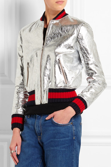 - Gucci fue uno de los responsables que revivió este clásico y lo elevó a prenda de la temporada. Todo gracias a su famosa bomber, nada menos que, de ¡color plata! Los metálicos y las bomber son el nuevo combo que la lleva.