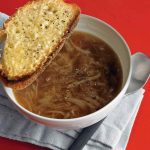 Sirve la sopa y agrega rebanadas de pan, espolvorea queso parmesano, hornea 5-6 minutos y ¡listo! No es necesario licuar ni procesar. La cebolla estará suave, sabrosa, increíble.