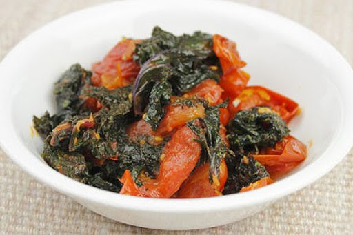 Calentamos el aceite de oliva en una sartén grande, agregamos el ajo y lo salteamos por unos dos minutos, hasta que estén levemente dorados. Luego, agregamos el kale y el caldo de verduras y cocinamos a fuego medio hasta que este se ablande, agregamos los tomates y cocinamos por cinco a siete minutos más. Retiramos del fuego y agregamos el jugo de limón, la sal y pimienta. Servimos caliente ¡Delicioso y saludable, qué mejor!