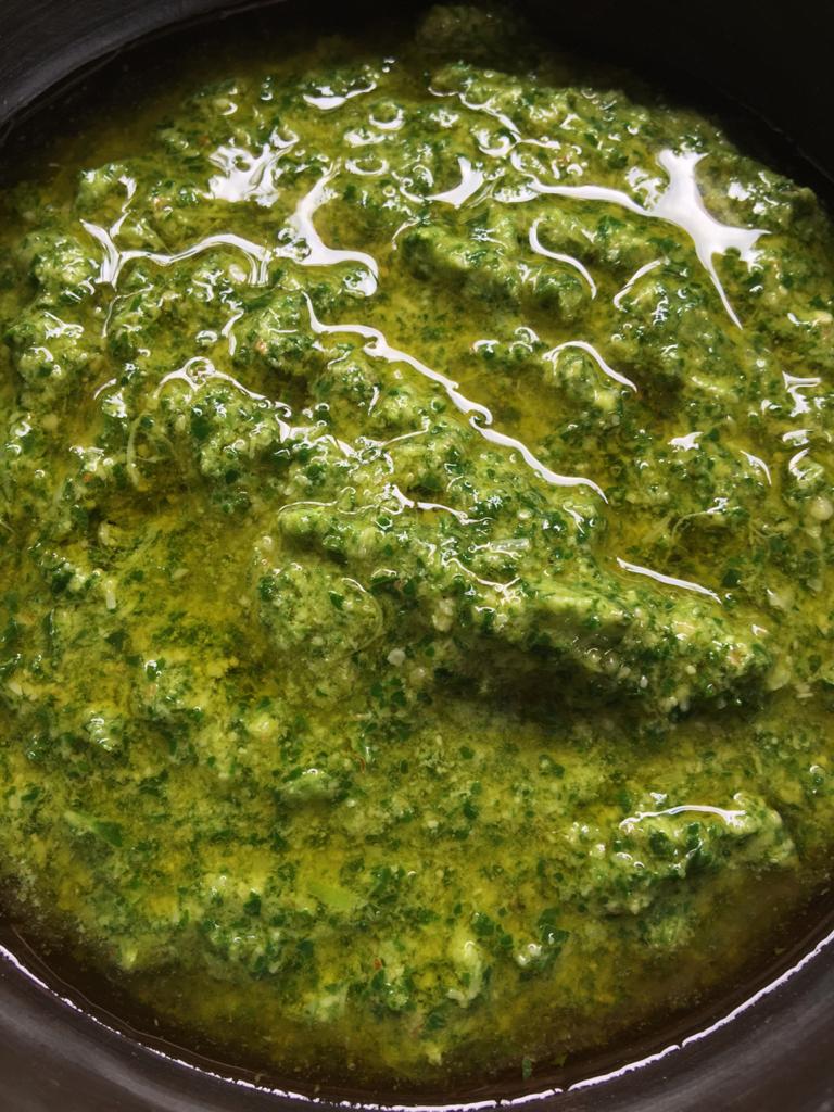 El kale lo dejamos unos 5 minutos en agua hirviendo, para que resalte su color y se ablande un poco el tallo. En una minipimer ponemos todos los ingredientes y procesamos bien, añadimos al final un poco más de aceite de oliva. Y terminamos, lo puedes acompañar con pastas, ñoquis, o con unas papas cocidas, con lo que tú prefieras. ¡Anímate, es muy rico y nutritivo!