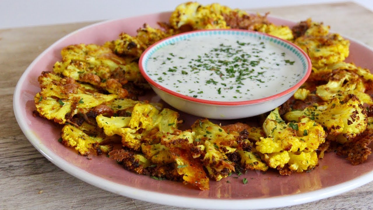 Ricos chips de coliflor y para eso necesitamos, una coliflor, aceite de oliva, 1 cucharadita jengibre, 1 cucharada cúrcuma, 1 cucharadita ajo en polvo, 1/2 cucharadita pimienta,1 cucharada sésamo negro, 1 cucharadita sal y 2 cucharadas parmesano rallado.
