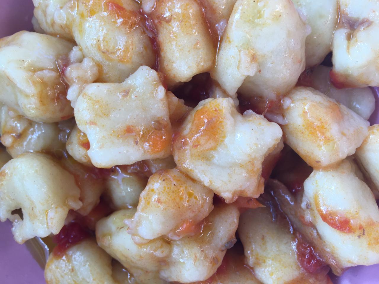 Finalmente, en una olla con agua caliente vas tirando de a poco los ñoquis. Están listos apenas flotan, ¡y listo! Trata de llevarlos a una fuente con la salsa ya lista, o con aceite de oliva, para que no se peguen.