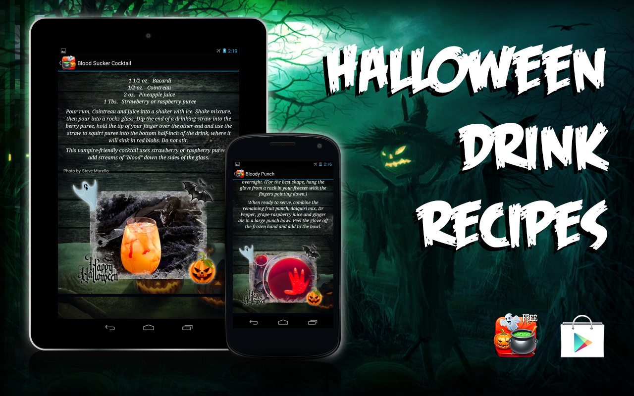 Los mejores cocktails de muerte. Olvídate de la piscola y descarga Halloween Drink Recipes, en la cual podrás descubrir varios cócteles con inspiración terrorífica: Zombie Cocktail, Martini Beso de Vampiro o un Chupasangre. Aunque el más famoso es el Bloody Mary, inspirado en la sangrienta María Tudor de Inglaterra. Y lo mejor de todo: Es gratuita en el Play Store.