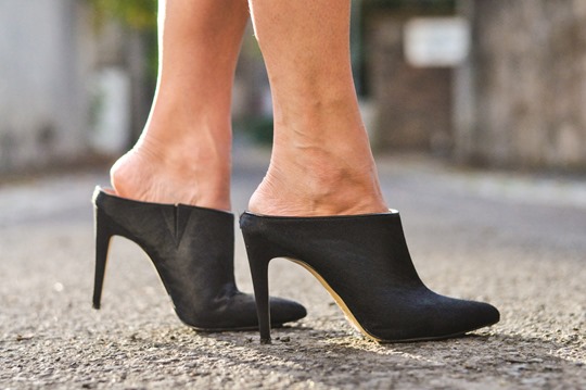 - Mules o el botín sin talón ni punta: es el zapato de media estación por excelencia, ¡pero ojo! Pueden acortar las piernas al cubrir el empeine. El mejor truco es elegirlos en tono nude para evitar ese efecto, de lo contrario es mejor priorizarlos con prendas de talle largo, como falda o pantalón a la cintura.