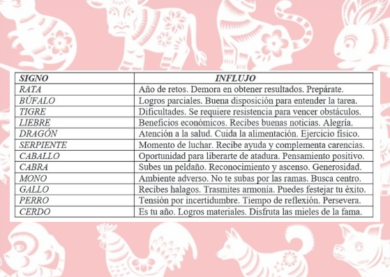 Te presentamos un resumen de cómo afectará la energía del año del cerdo a tu signo zodiacal chino, en los asuntos del amor, junto al Mensaje de Cupido para para sacarle el máximo provecho. Al lado de cada signo aparecen los años del calendario universal que les corresponde. Las personas nacidas entre el 20 enero y 17 de febrero podrían pertenecer al signo del año anterior o del siguiente (según su caso específico).