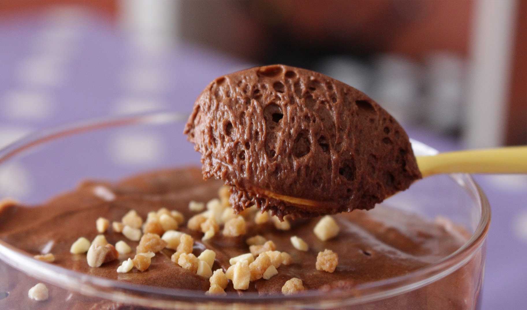 Puedes hacer un increíble mousse casero con estos ingredientes, van todos a una mini pimer y cuando la pasta esté lista, agregas almendras laminadas y nibs de cacao para darle un toque crocante.