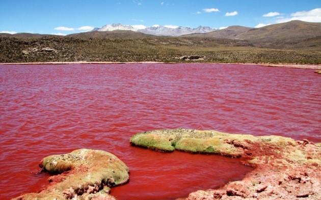 La poco conocida Laguna Roja está ubicada en la comuna de Camarones, en la Región de Arica y Parinacota, a 147 kilómetros de Iquique.