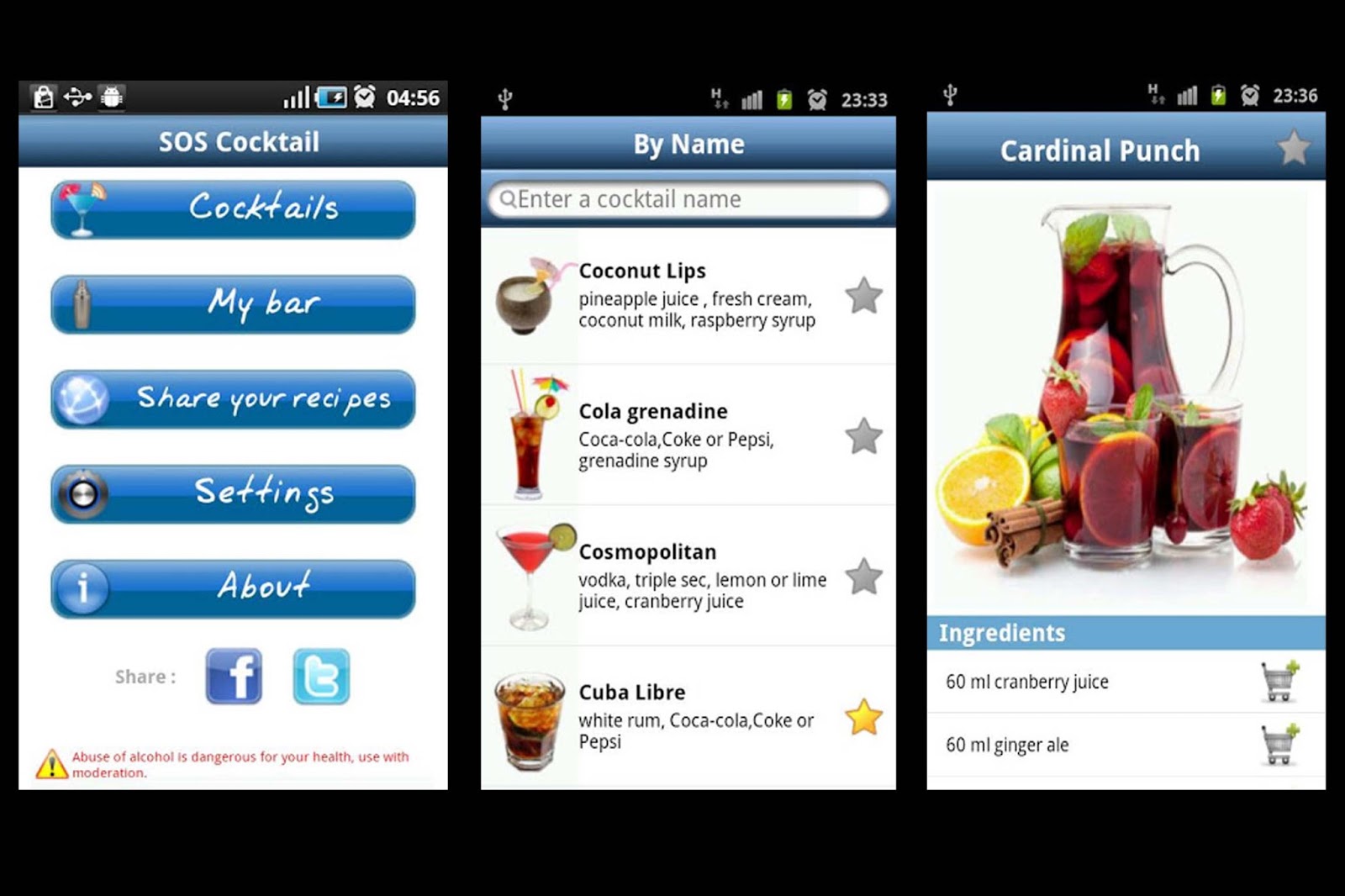 ¿Invitados a tu casa? ¿Quieres impresionar a alguien? Prueba con alguna de las miles de recetas que ofrece esta app, con la que podrás transformarte, en pocos pasos, en un tremendo bartender. Lo entretenido es que puedes compartir recetas, subir las tuyas, buscar por tipo de alcohol, preparaciones, etc. Es una guía bien completa y necesaria para los que nos gusta hacer de una noche algo más sofisticado. Disponible en Android.