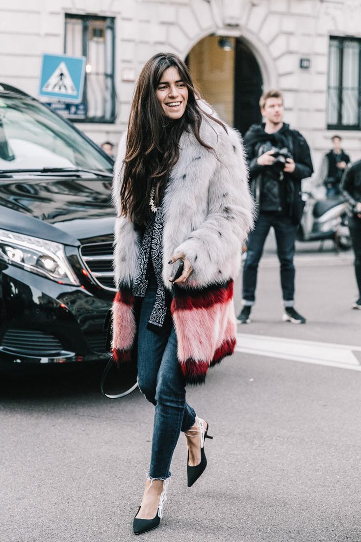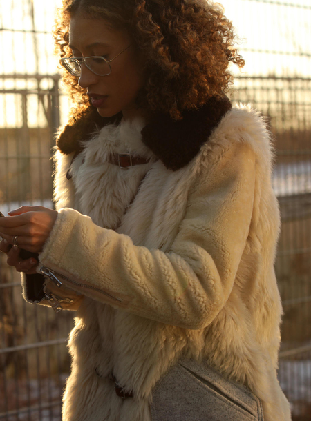 Una de nuestras texturas favoritas es el pelo sintético. Una de las gracias es no temer a su volumen y jugar con los tamaños oversize, que permiten usar abajo blazers o chaquetas más ligeras como las de cuero.