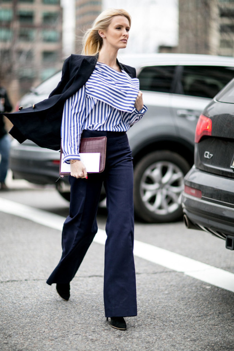 - Neo navy: las rayitas marineras vuelven, pero esta vez en colores y grosores distintos, además de estar incorporados en prendas asimétricas. Acá la regla es simple: las rayitas angostas achican, mientras que las anchas agrandan o acentúan la zona donde vayan.