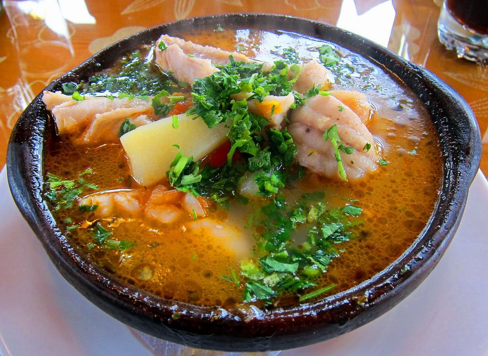 - En una sartén, fríe bien la cebolla en color y agrega a esto el charqui molido. Aliñar con perejil, orégano, un poquito de comino y, cuando esté todo bien frito y dorado, se vierte a una fuente honda de greda, donde se agregará el caldo, para hervir todo junto.
