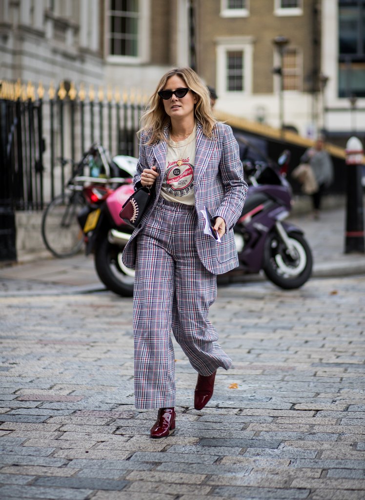 El estampado Príncipe de Gales se repitió una y otra vez, especialmente en blazers oversize y en pantalones de corte masculino.
