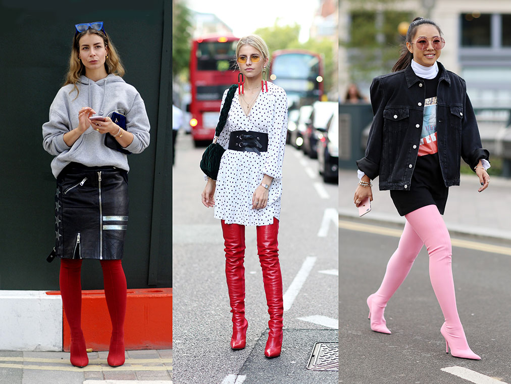 Las botas llamativas también jugaron su parte, especialmente las botas y botines con efecto calcetín, muy ceñidas.
